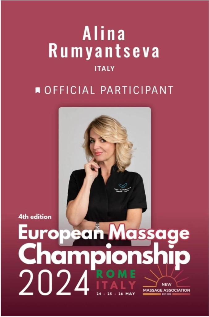 Non manca nel percorso di Alina la partecipazione a campionati internazionali nel campo del massaggio. A maggio di quest’anno ha partecipato al campionato europeo di massaggi a Roma nella categoria Face, arrivando al quattordicesimo posto, su un totale di oltre ottanta partecipanti.