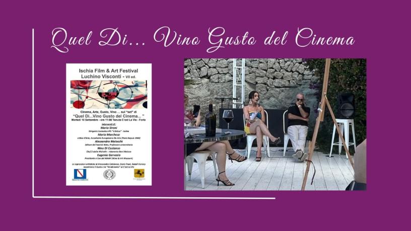 Il 10 Settembre 2024, Maria Marchese , nostra collaboratrice da tempo, poetessa, critica d’arte per Académie Européenne Des Arts – Paris Depuis 1965 , art influencer, ha partecipato come co-relatrice all’evento ischitano “Quel Di… Vino Gusto del Cinema”, il cui moderatore è stato Massimo Zivelli, organizzatore del Ischia Film & Art festival “Luchino Visconti”. All’evento “Quel Di… Vino Gusto del Cinema” hanno portato il proprio contributo Alessandro Maiocchi, Nino di Costanzo, Eugenio Gervasio, Mario Sironi e le performance artistiche live di Alessandra Calabrese, Nataly Ferrari e Denis Trani.