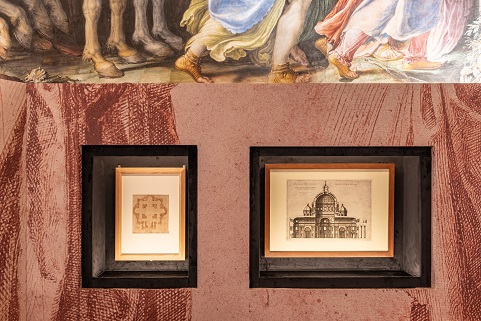 A rappresentare i diversi rapporti di Michelangelo con i potenti incontrati nella sua lunga vita, sono esposte altre importanti opere. Sono molte quelle concesse da Fondazione Casa Buonarroti, tra cui un disegno raffigurante un Torso di nudo di spalle, studio per la Battaglia di Cascina (che rinvia alla committenza di Pier Soderini, il gonfaloniere che volle il David ai piedi del palazzo del governo), ben quattro Disegni di fortificazioni, eseguiti dall’artista nel periodo dell’assedio di Firenze al servizio della Repubblica, e due Disegni progettuali per il complesso di San Lorenzo, uno per la facciata della Basilica e l’altro per la Biblioteca Laurenziana, che narrano invece il suo rapporto con i papi Medici, Leone X e Clemente VII. A questo importantissimo nucleo di disegni si aggiunge la Pianta della Basilica di San Pietro, conservata alle Gallerie degli Uffizi, impresa che tenne occupato Michelangelo per molti anni dal 1546 e fino alla morte nel 1564, in un confronto non sempre facile con ben quattro papi da Paolo III fino a Pio IV.
