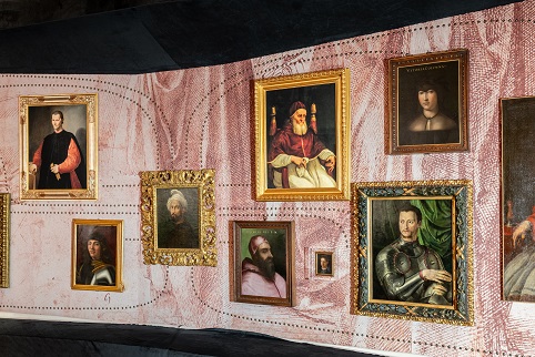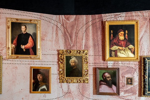 L’allestimento in Sala dei Gigli intende ricreare il fitto reticolo di incontri, confronti e scontri di Michelangelo con il potere, disegnando una sorta di costellazione di ritratti di uomini e donne illustri, tutti ruotanti intorno al Ritratto dell’artista eseguito dall’amico Giuliano Bugiardini, posizionato al centro della grande parete come ‘astro sfolgorante’. Qui si susseguono i ritratti di Girolamo Savonarola di Fra’ Bartolomeo e di Pier Soderini attribuito a Ridolfo del Ghirlandaio, oltre a quelli di Cosimo I in armatura di Agnolo Bronzino, di Vittoria Colonna, del Cardinale Reginald Pole in conversazione con Paolo III e quello di Leone X con i cardinali Giulio de’ Medici e Innocenzo Cibo, sempre del Bugiardini. La ‘quadreria’ rende con evidenza plastica il magnetismo esercitato a 360 gradi da Michelangelo e dalle sue opere, in una rete di connessioni tra l’artista e il potere che è durata per quasi un secolo attraversando la luminosa stagione di Lorenzo il Magnifico, quella ‘piagnona’ di Frate Savonarola, primeggiando nel ‘nuovo mondo’ culturale instaurato dal gonfaloniere Soderini assieme a Machiavelli e Lorenzo di Pier Francesco, detto il Popolano, fino agli anni del doppio pontificato mediceo con Leone X e Clemente VII: decenni che misero alla prova il potere della Chiesa di Roma investita dalla Riforma di Lutero, alla quale si reagì con il Concilio di Trento e con la conseguente Controriforma, assoggettando le arti della pittura e della scultura all’ortodossia della dottrina cattolica. In mezzo alle turbolenze dei conflitti religiosi e delle guerre che attraversarono l’Europa, mentre l’Italia e la Toscana divenivano il campo di battaglia tra Spagna e Francia, Michelangelo difese in ogni modo la sua libertà di coscienza, rivendicando il potere dell’arte e dell’artista.