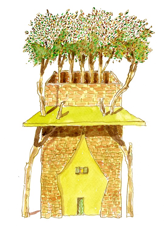 Tra i lavori più emblematici si distingue anche la serie dei “Gazebi” del 2023-24, come “Casetta alberata” e “Gazebo Gotico”, che ritrae piccoli rifugi immersi nel verde, dove l’artificio architettonico si sposa con l’elemento naturale.