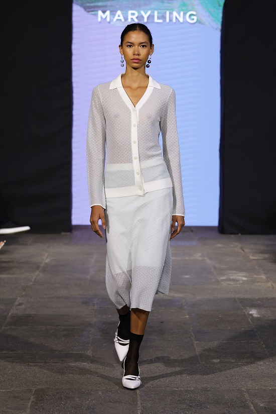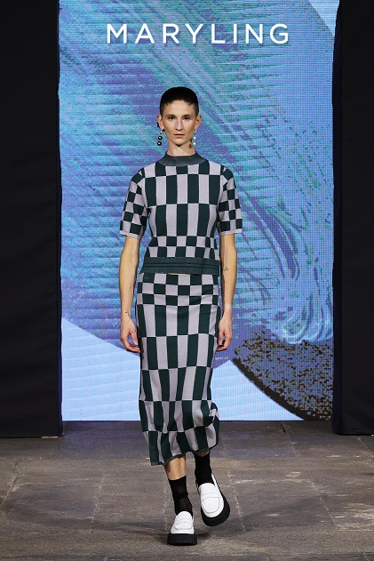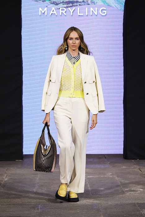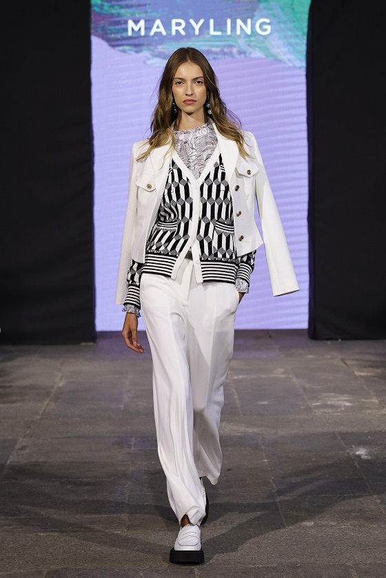 Ecco, dunque, i motivi a maglia con intarsi ton sur ton o nero su bianco, perfetti per rispecchiare le forme geometriche dell’architettura e della Op -art mentre sono sempre presenti le cromie tipiche di MARYLING come il blu elettrico, il rosa scuro e il pesca.