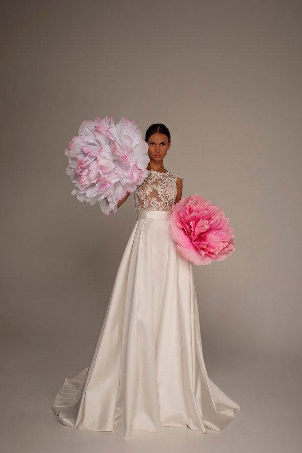 Sempre più spose, non giovanissime, rinunciano alla sensazione di indossare un abito principesco ma il matrimonio rimane il grande sogno di molte donne anche di coloro che per necessità di carriera e famiglia hanno spostato l’età delle nozze. Splendide quarantenni e cinquantenni desiderano abiti raffinati e sontuosi, anche con veli importanti e per loro è studiata e pensata la collezione Daphne, sinuosa e morbida nelle linee e nei materiali, che promette di soddisfare ogni esigenza, anche in tempi brevi.