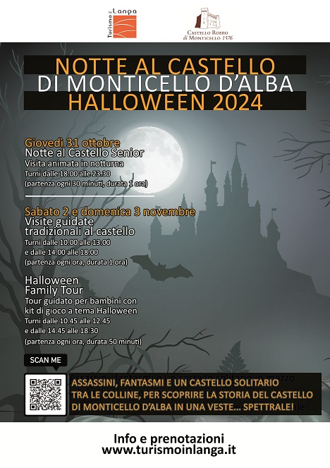 Sempre sabato 2 e domenica 3 novembre 2024 in occasione della festa di Halloween, verrà proposto l’Halloween Family Tour, il tour ambientato all’interno del Castello di Monticello d’Alba, pensato per famiglie con bambini.