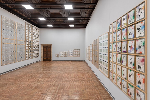 Il Salone d’Onore, riconfigurato per l’occasione da un’importante struttura allestitiva, ospiterà l’Opera postale (De bouche à oreille), lavoro di dimensioni colossali, creato nel 1992-93, un anno prima della morte dell’artista. Esposta raramente, l’opera costituisce una summa del suo lavoro precedente che “rimette al mondo” i passaggi più alti della sua ricerca. Realizzata con la collaborazione delle Poste francesi, de Le Magasin – Centre National d’Art Contemporain di Grenoble e del Musée de la Poste, la composizione si articola in 11 serie, ognuna delle quali formata da due elementi: le buste e i disegni (506 buste affrancate e timbrate e 506 disegni a tecnica mista).