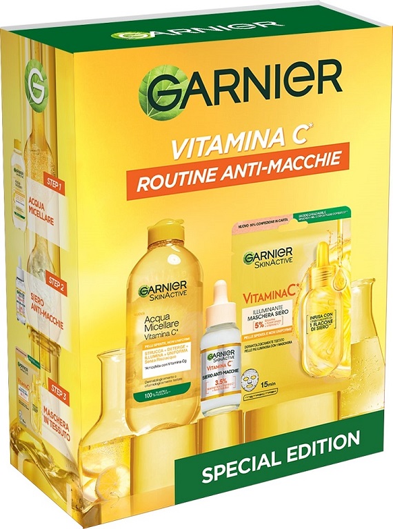 Per chi è in cerca di una coccola illuminante, il regalo ideale è il coffret di Natale Garnier SkinActive Vitamina C, una Special Edition con Routine Anti-Macchie in 3 step: