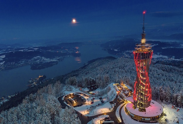 Il lago Wörthersee, con le città di Velden, Pörtschach, Maria Wörth e la torre panoramica Pyramidenkogel, in inverno è permeato da un’atmosfera unica.