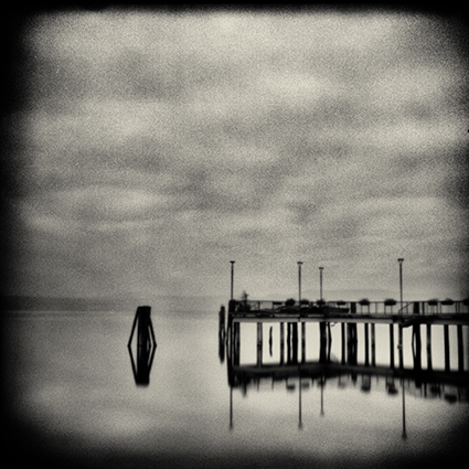 Lunardo non vi cerca riferimenti esterni, ma piuttosto riconosce in esso il riflesso di un percorso introspettivo, di una domanda continua sul senso della propria esistenza e della propria relazione con il mondo. Le sue opere coinvolgono il fruitore non tanto per quello che mostrano ma per come trattano il tempo e lo spazio. La lunga esposizione del foro stenopeico cattura non solo il visibile, ma anche l’invisibile che sfugge all’occhio umano: in questa prospettiva si manifesta il gioco di luci e ombre, l’incertezza delle forme, il mistero delle linee non perfettamente delineate, l’orizzonte libero da qualsivoglia regola e misura.
