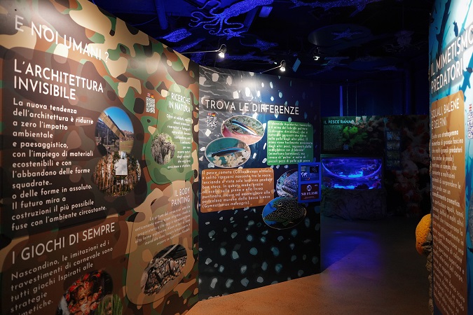 Insomma, un percorso estremamente curioso che invita i visitatori a scoprire – all’interno delle quattro grandi vasche dedicate – le trasformazioni dei vari esemplari e ad approfondire, divertendosi, un aspetto meno conosciuto ma che coinvolge diverse specie tutte con la stessa esigenza di camuffarsi, nascondersi, mimetizzarsi, per difendersi o per aggredire, per far fronte alla legge di sopravvivenza.