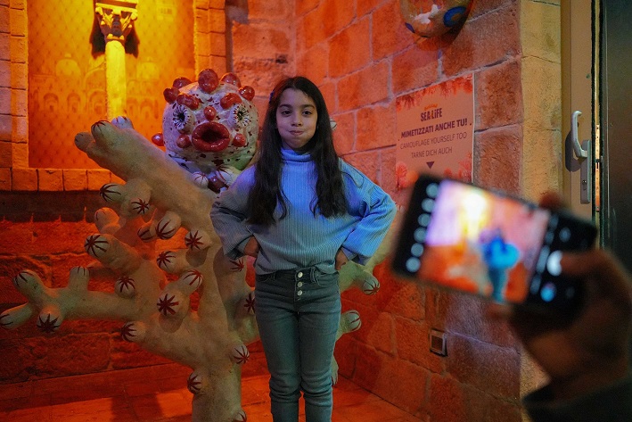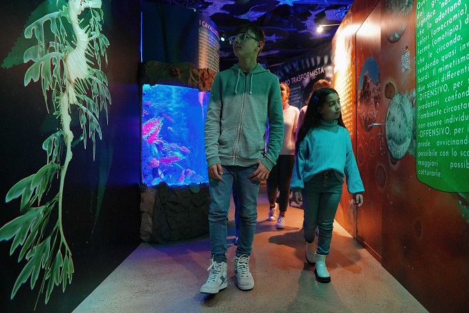 Oltre alle vasche con i diversi esemplari da scoprire, l’area è interamente tematizzata e i bambini potranno giocare a mimetizzarsi grazie ad un cavalluccio pigmeo in mezzo a un corallo sul retro del quale è possibile infilare la faccia e camuffarsi da cavalluccio.