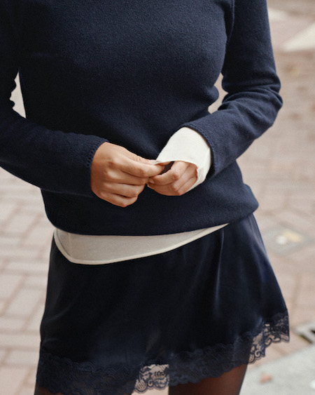 La combinazione di modal e cashmere lo rendono perfetto da indossare come intimo quando le temperature scendono, ma soprattutto ideale da abbinare ad altri capi, come un blazer oversize o un maxi-maglione.