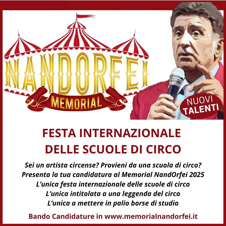 Il Festival si svolgerà dal 9 al 12 ottobre 2025 a Peschiera Borromeo presso il Piccolo Circo dei Sogni, via Carducci 6. Le date e le novità principali sono state presentate nell’ambito delle “Giornate di studio sull’arte circense” da Paride Orfei, fondatore e regista del festival, e Roberto Bianchin, direttore generale del Memorial. Il bando per la selezione degli artisti è disponibile su www.memorialnandorfei.it e allegato in calce a questo articolo.