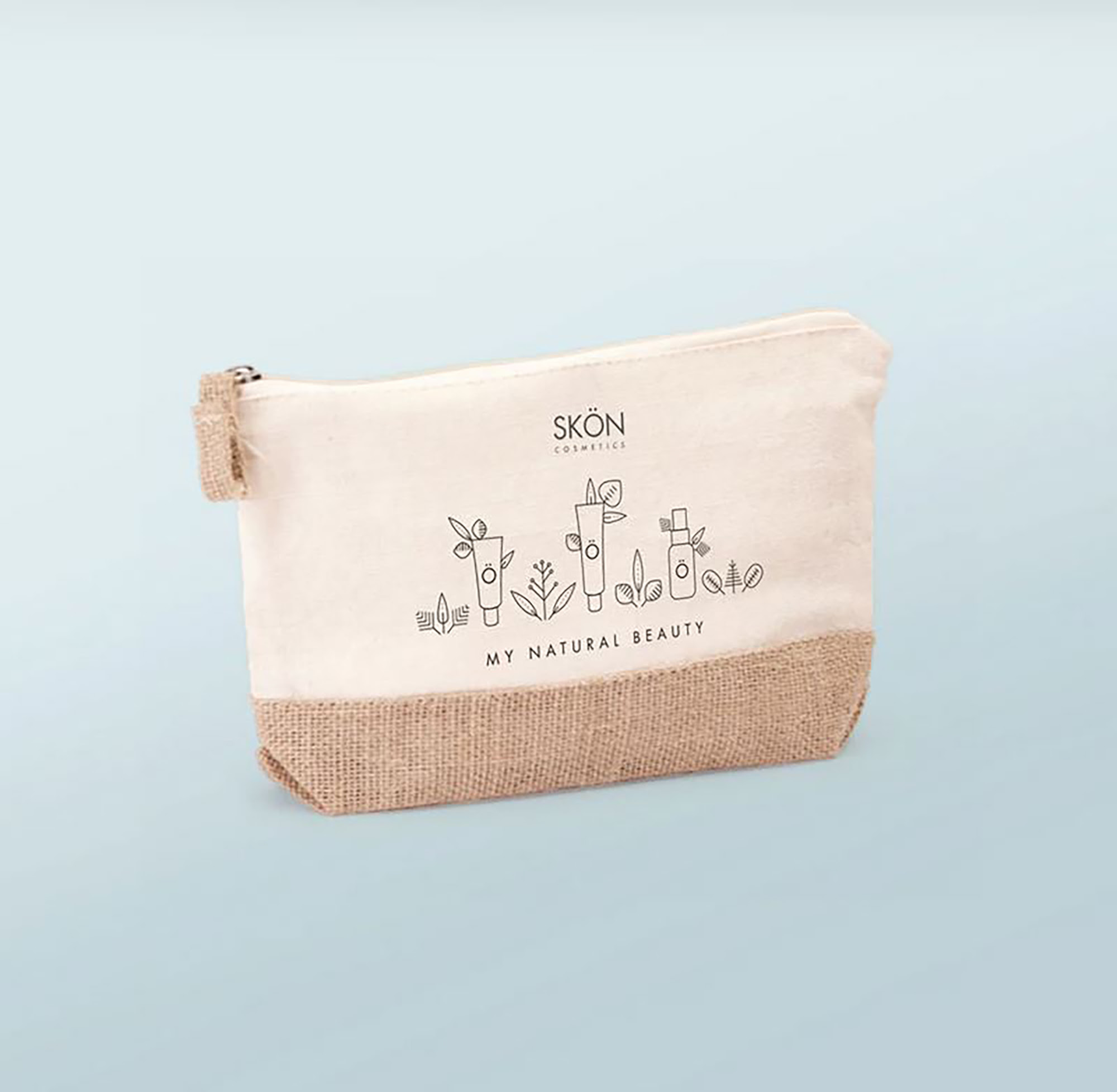 100% cotone organico dal colore tono naturale. Certificato GOTS (Global Organic Textile Standard) che garantisce che i tessuti siano fatti con fibre organiche. Ideale per portare i tuoi prodotty beauty sempre con te.