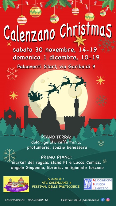 Sabato 30 novembre (dalle 14 alle 19) e domenica 1° dicembre (dalle 10 alle 19) presso il Palaeventi “Start” di Calenzano (via Garibaldi 9, a due passi dal centro) dopo il successo dello scorso anno torna la seconda edizione di “Calenzano Christmas”: il primo e vero market del regalo natalizio distribuito su due interi piani a ingresso gratuito.