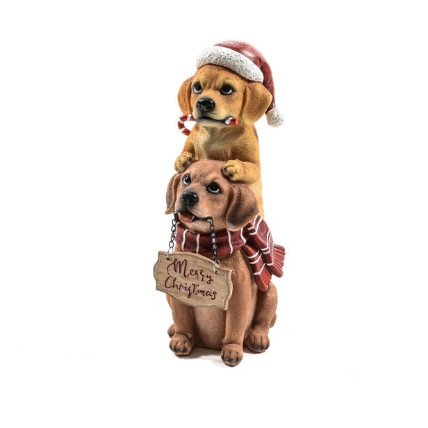 Che tenera questa decorazione natalizia! Il due cagnolini, uno in spalla all'altro, augurano buon Natale con il loro cartello. Potrai posizionarla per decorare librerie, mensole e tavolini durante le feste.