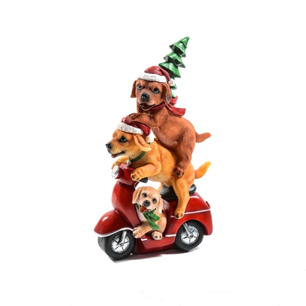 19 Cani su motoretta decorazione Natale resina 31x18x10 cm