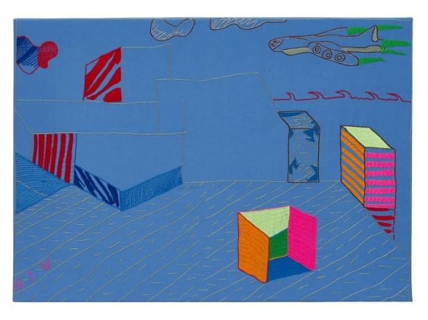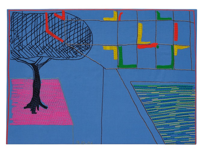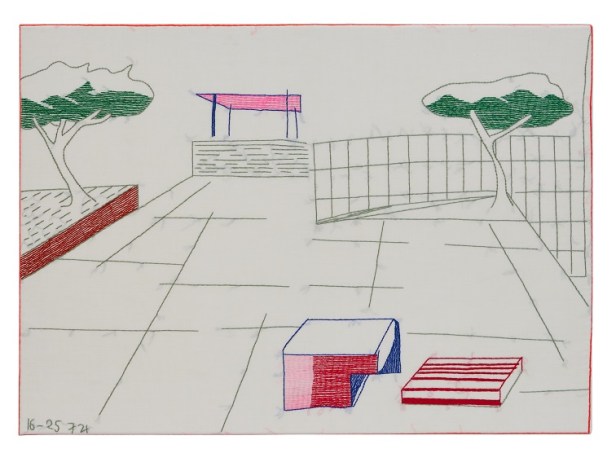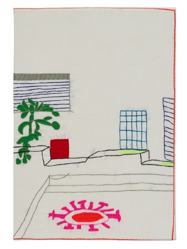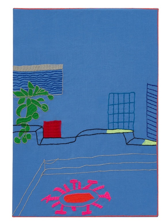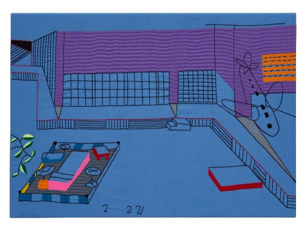La mostra ospitata negli spazi della galleria milanese presenta i lavori che compongono questa seconda serie che, a detta dello stesso artista, non possono più essere considerati degli schizzi perché sono diventati tessuti ricamati: “E che non sono propriamente nemmeno interni perché non sono solo stanze, sono terrazze e sono mari, sono viste che si aprono quando ne hanno voglia e vanno un po’ dove vogliono”.