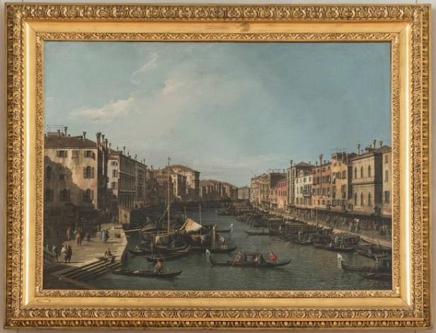 La rappresentazione di Venezia è affidata alle pennellate di Giovanni Antonio Canaletto, di cui la mostra riunisce quattro capolavori. Il pittore veneziano unisce una profonda conoscenza della prospettiva con un approccio innovativo allo schema compositivo della veduta, offrendo una propria interpretazione creativa del genere. Riservando una forte attenzione all’effetto pittorico, Canaletto condensa in opere come Veduta di Venezia con la Piazzetta (1741 ca) e Veduta di Venezia con il Ponte di Rialto (1735-1740 ca) un’immagine di Venezia carica di dettagli e caratterizzata da una grande nitidezza descrittiva, unita a una forte sensibilità luminosa e atmosferica.