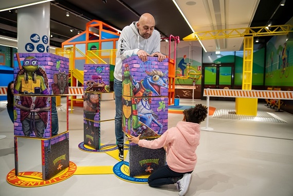 I piccoli visitatori e le piccole visitatrici troveranno infatti proprio le Tartarughe Ninja, le quattro tartarughe antropomorfe, appassionate di pizza, protagoniste assolute di Nickelodeon, brand per bambini e ragazzi di Paramount, con le tante serie animate e i cinque film.