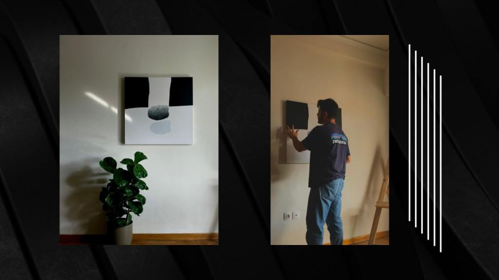 “Un uomo non dovrebbe mai camminare con tanto impeto da lasciare tracce così profonde che il vento non le possa cancellare” l’artista beneventano sottolinea un legame di appartenenza che si percepisce dalla vicinanza con le geometrie presenti sulla tela, ma se si tratti di terze persone è da vedersi…sono tracce aleatorie, forse offuscate dal vento, o, al contrario, liberatorie, perché ci permettono di scegliere.