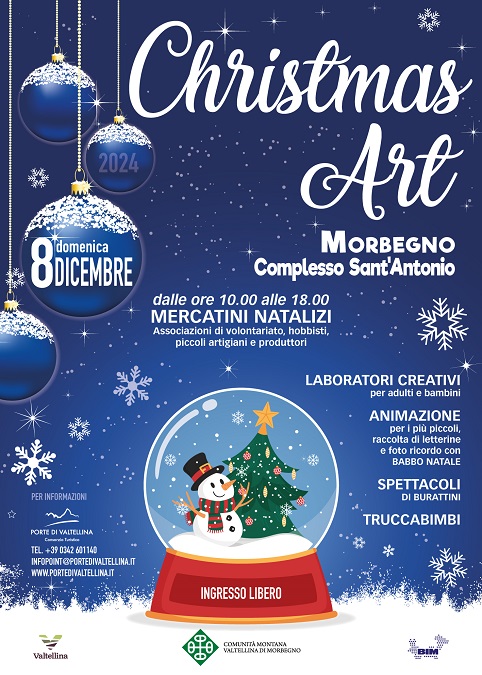 Non sarà da meno Morbegno che, l’8 dicembre, ospiterà Christmas Art: i classici mercatini di Natale nel centro della cittadina. Hobbisti, piccoli artigiani e aziende agricole esporranno nel Complesso S. Antonio mostrando le proprie creazioni e delizie, mentre grandi e piccini potranno divertirsi tra i diversi laboratori e attività proposte.