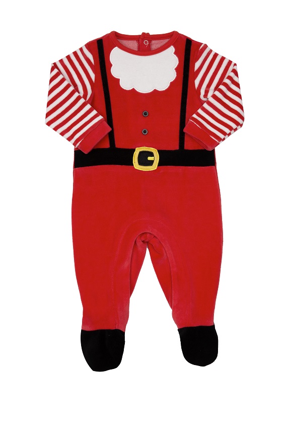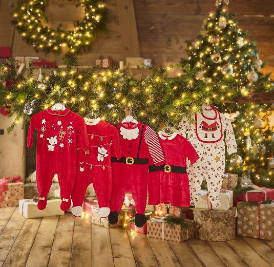 Ampio spazio anche ai neonati, con proposte dal tocco romantico e altre che strappano sorrisi. Tra i capi più dolci c’è il vestito rosso scarlatto con gonna in tulle decorata con pois dorati, perfetto per le occasioni speciali. Non mancano proposte divertenti come la tutina da baby Babbo Natale (disponibile anche in versione vestitino), il completo da piccolo elfo e tante tutine decorate con stampe a tema natalizio.
