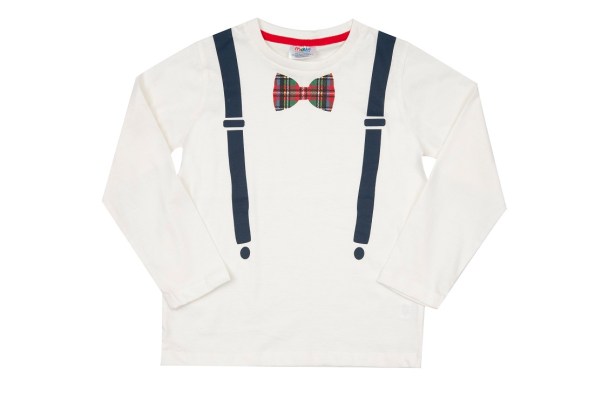 Per i maschietti ci sono i pantaloni in velluto a coste blu notte in abbinamento alla maglia con papillon scozzese e bretelle stampate (per i più grandi) o nella versione con dinosauro natalizio (per i più piccoli). Per chi preferisce il tocco caldo dei cardigan, quello di Mawi è in double color, blu con maniche grigie, per un perfetto equilibrio tra tradizione e modernità.