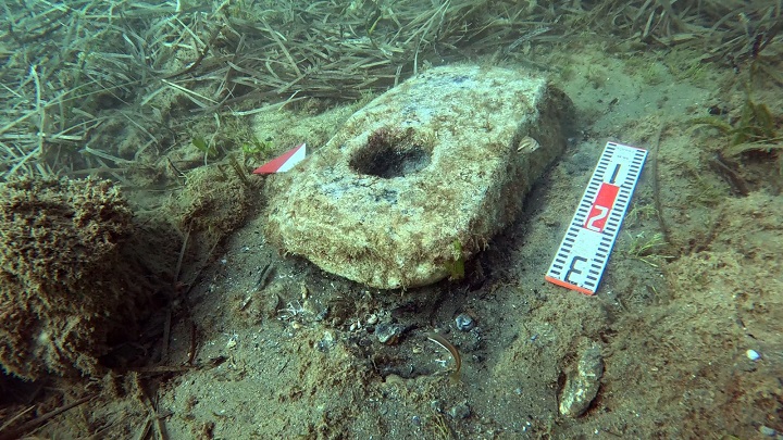 A pochi metri dal naufragio sono stati individuati due nuclei di ancore: due in ferro del tipo a “T” rovesciata, probabilmente risalenti al VII secolo d.C., e quattro litiche, di probabile epoca preistorica.