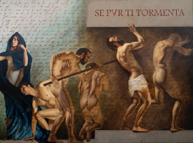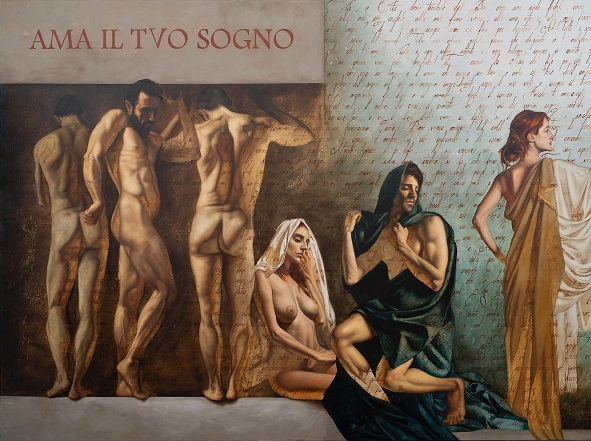La mostra – curata da Raffaele Curi e organizzata da Lorenzo Zichichi de “Il Cigno Arte” – vede esposte venti opere realizzate dall’artista romano tra il 2020 e il 2024: Vanitas, Spazi intermittenti, Allegoria della notte, Tra le ombre, La morte di Saffo, Lamia, Prigione di spiriti, Sudario del martire, Vuoto, Vertigine, L’altare dell’incertezza, Fruscii di parole, Danza di polvere, Fede opprimente, Memorie corrotte, Norah, Avvolgi, Elegia, Laudi, Laudi – bozzetto.