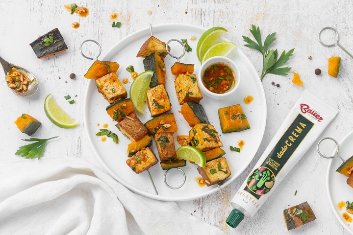 La marinatura richiama i sapori orientali, con il tocco di piccantezza della paprika che ravviva il piatto. E per dare un ulteriore boost di sapore, entra in scena anche DADOCREMA Bauer gusto Vegetale!