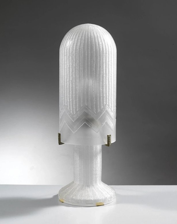 Robertaebasta (illuminazione): espone una lampada da tavolo Art Deco in vetro con dettagli metallici firmata Daum, risalente al 1925.