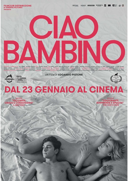 Esce nelle sale dal 23 gennaio 2025, distribuito da Filmclub Distribuzione by Minerva Pictures, “Ciao Bambino” opera prima di Edgardo Pistone prodotto da Bronx Film, Anemone Film, Mosaicon Film, Minerva Pictures Group e realizzata con il sostegno del Mic – Ministero della Cultura – Direzione Generale Cinema e Audiovisivo e Regione Campania – Fondo Cinema e Audiovisivo, in collaborazione con Film Commission Regione Campania.