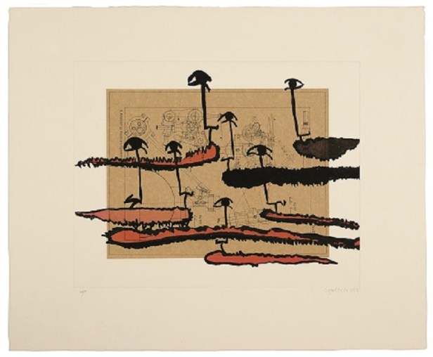 Da questa opera incisa emerge infatti la grande complicità con l’editore-stampatore, che ha lasciato all’artista tutto lo spazio per un’espressività scatenata, priva di regole. E dunque, Unique Multiples – multipli unici. Multipli pensati dall’artista con la stessa intensità dei pezzi unici. Per questo motivo, un medesimo soggetto talvolta viene proposto in mostra anche con un intervento pittorico realizzato a mano sul foglio stampato, oppure viene accostato a un esemplare di prova, per essere colto nella singolarità di ogni sua declinazione. L’arte moltiplicata esce così da ogni schema e diventa testimonianza della infinita libertà di Carol Rama.