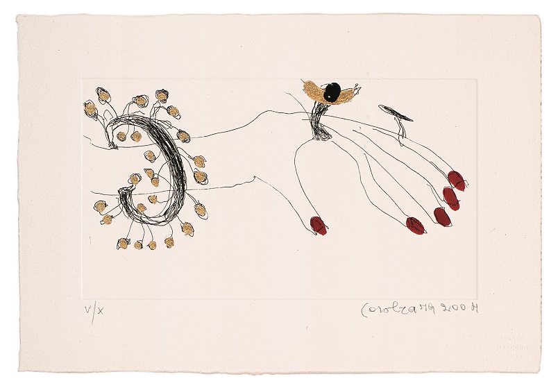 Da questa opera incisa emerge infatti la grande complicità con l’editore-stampatore, che ha lasciato all’artista tutto lo spazio per un’espressività scatenata, priva di regole. E dunque, Unique Multiples – multipli unici. Multipli pensati dall’artista con la stessa intensità dei pezzi unici. Per questo motivo, un medesimo soggetto talvolta viene proposto in mostra anche con un intervento pittorico realizzato a mano sul foglio stampato, oppure viene accostato a un esemplare di prova, per essere colto nella singolarità di ogni sua declinazione. L’arte moltiplicata esce così da ogni schema e diventa testimonianza della infinita libertà di Carol Rama.