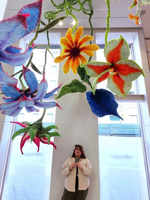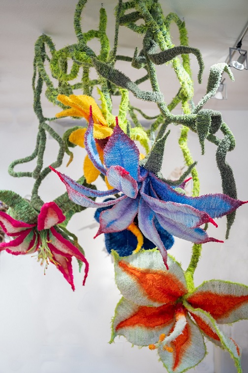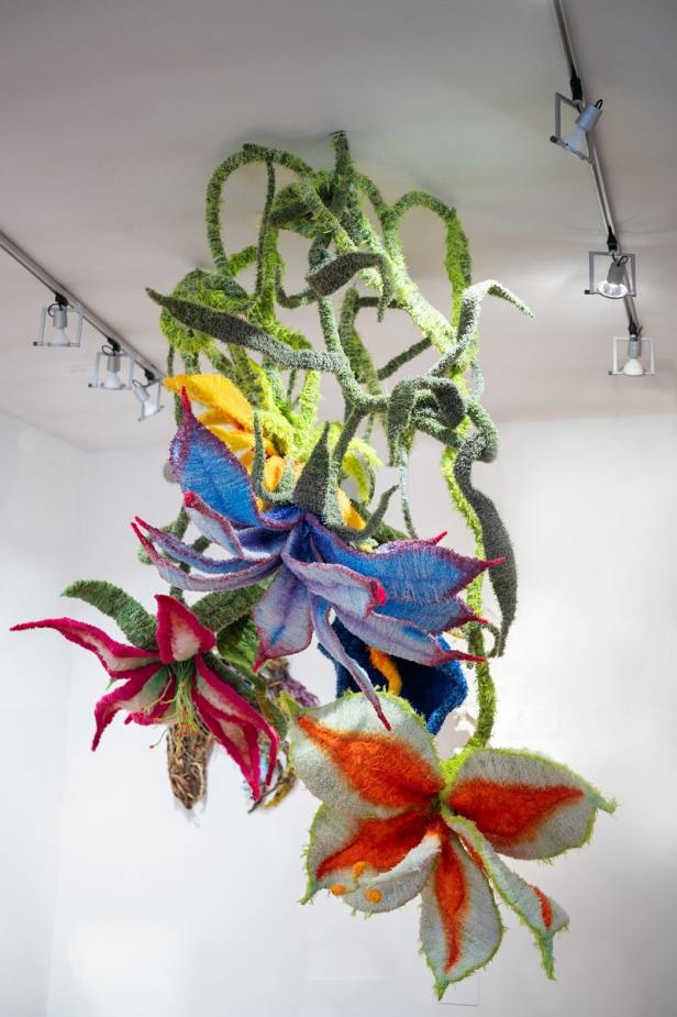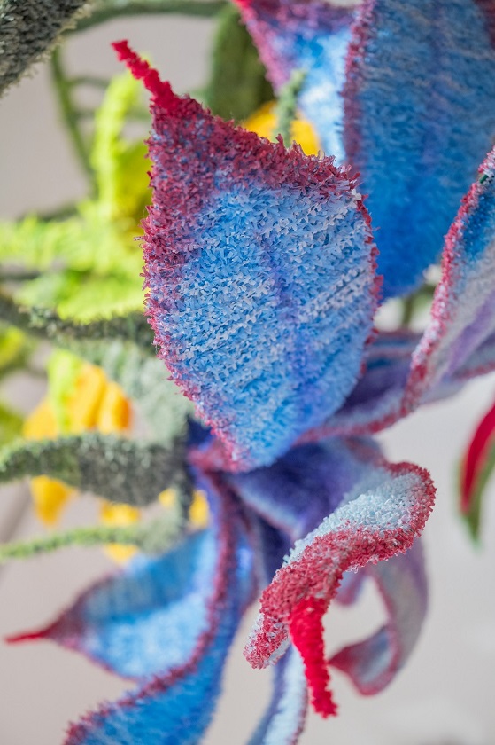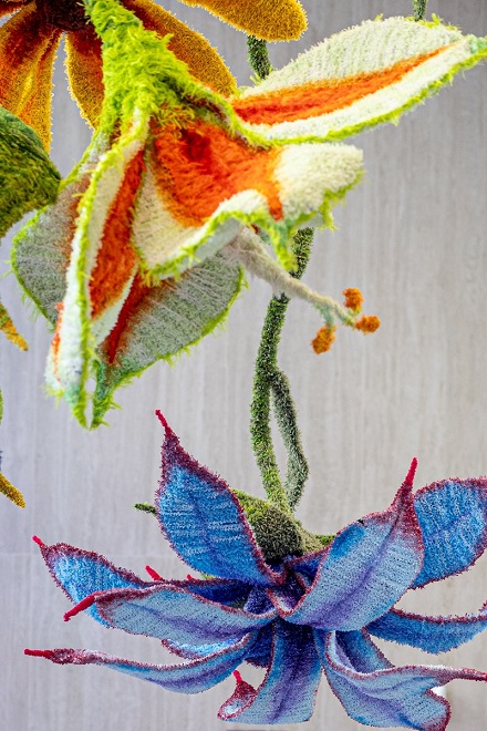 Elham M. Aghili, artista italo-iraniana attiva in ambito nazionale ed internazionale, coniuga la speculazione intellettuale con una cifra espressiva che prende forma attraverso una tecnica magistrale e un attento sguardo alle istanze contemporanee di sostenibilità. La sua poetica evoca una natura parallela e immaginifica, dove intrecci di filati – nello specifico scarti di produzione di VIMAR1991 – danno vita a paesaggi che oscillano tra realtà e illusione, tra naturale e artificiale, tra essere e apparire. Con un linguaggio visivo intriso di riferimenti simbolici e culturali, l’artista rilegge il rapporto fra l’uomo e l’ambiente, trasformando i fili in metafore visibili delle connessioni invisibili che legano il pensiero umano al mondo naturale.