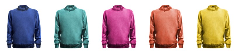 Sono sette le nuove colorazioni shock in cui SVEVO ha scelto di declinare il girocollo sotto-giacca, impreziosendone collo, polsi e vita con colpi d’aerografo realizzati a mano: NAVY, BLUETTE, GORYEO, LAMPONE, PAPAYA, SOLE e OPTICAL WHITE