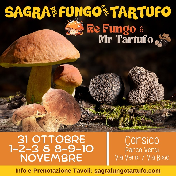 “Re Fungo e Mr. Tartufo” si svolgeràvenerdì sera (ore 19:00 – 24:00) e sabato e domenica (12:00 – 15:00 e 19:00 – 24:00).