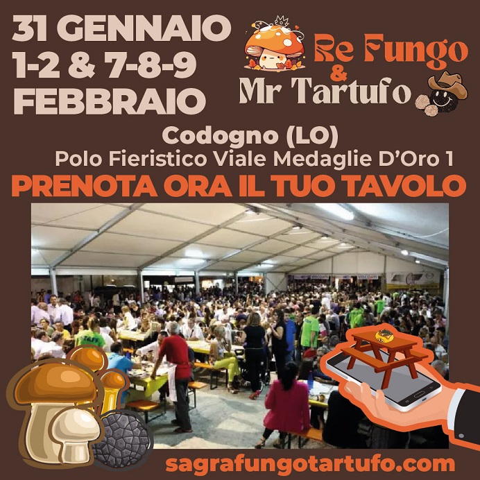 Un viaggio di sapori con i prodotti più tipici del bosco. Saranno i funghi e i tartufi i principali protagonisti di “Re Fungo e Mr. Tartufo”, evento culinario ormai noto in Lombardia, grazie al grande successo riscosso in molteplici paesi e città.