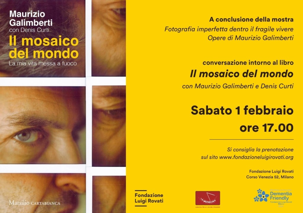 Sabato 1° febbraio, alle ore 17.00, si parlerà del volume “Il mosaico del mondo” dove l’autore dialogherà con Denis Curti. L’incontro conclude la mostra “Fotografia imperfetta dentro il fragile vivere OPERE DI MAURIZIO GALIMBERTI”.
