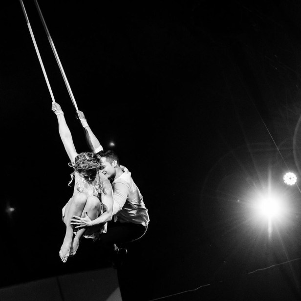 Il delicato “volo d’amore” alle cinghie aeree di due acrobati di talento come la bulgara Sneja Nedeva e l’italiano Cristian Orfei, discendente della celebre famiglia che ha scritto la storia del circo italiano, è tra i punti di forza del programma di numeri aerei, che comprende anche le evoluzioni dell’acrobata Simone D’Agostino con il suo tourbillon di “strappate”, e la spettacolare “Spirale Aerea” interpretata e cantata da Noemi Nox.