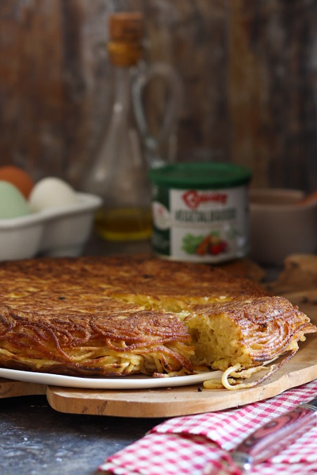Ce lo dimostra la foodblogger Antonella Iannone, @PassioneCucinaLab, che ha pensato ad un’invitante frittata di spaghetti: ne un primo piatto ne una classica omelette da servire come secondo, quanto piuttosto un piatto unico da…leccarsi i baffi! Antonella ha reso questa ricetta antispreco ancora più buona utilizzando il Vegetalbrodo Bauer, bontà naturale realizzata con un’accurata selezione di verdure: carote, sedano, pomodoro, prezzemolo e cipolla, tutte lavorate secondo il severo metodo della tradizione trentina.