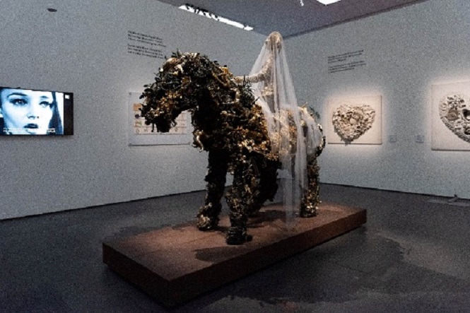 Sono 110 le opere esposte a Milano, di cui una decina di grandi dimensioni. Oltre a una selezione di opere su carta, video e vestiti della Maison Dior che ricordano anche il suo passato di modella per Vogue, Elle, Harper’s Bazaar e altre riviste francesi.