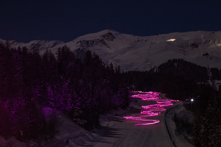 Sabato 15 febbraio adulti e bambini, armati di torce a luce led rosa, scenderanno sulle piste formando un lungo fiume luminoso. Sarà possibile partecipare con sci, snowboard, a piedi o con le ciaspole.
