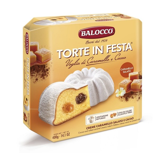 Grande novità di quest’anno della linea Torte in Festa Balocco, la Voglia di Caramello e Cacao sposa la cremosità della crema al cacao con il gusto intenso e dolce della crema caramello salato, creando un delizioso equilibrio di sapori e una combinazione irresistibile.