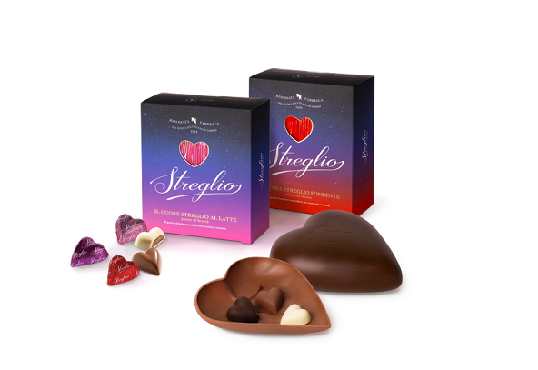 Il 14 febbraio si festeggia l’Amore con una nuova idea: i “Cuori Streglio” nelle due proposte cioccolato fondente o al latte.