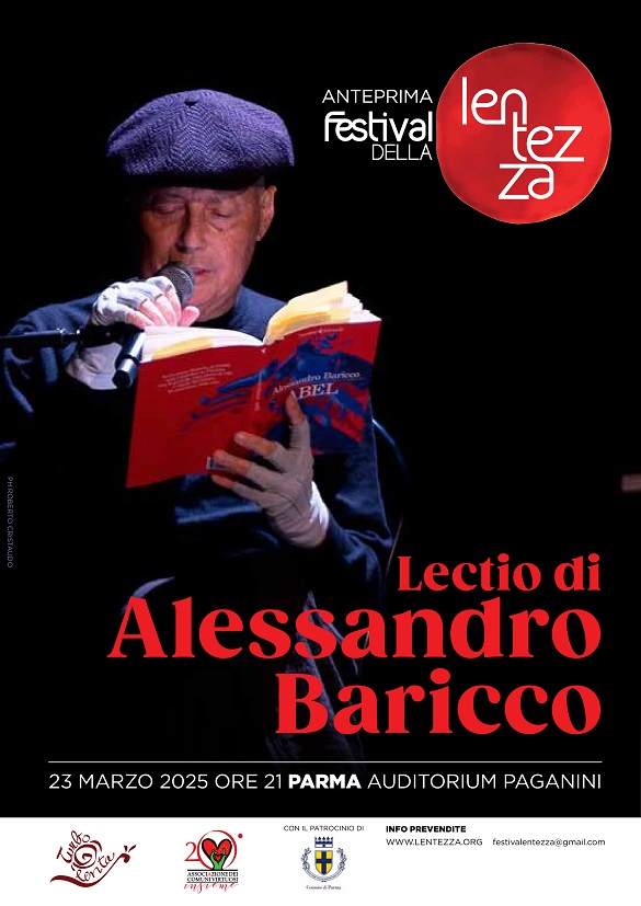 Alessandro Baricco introdurrà il tema del “filo rosso”, che farà da legame al gomitolo di iniziative che culmineranno nei tre giorni del Festival della Lentezza dal 6 all’8 giugno 2025 a Parma.