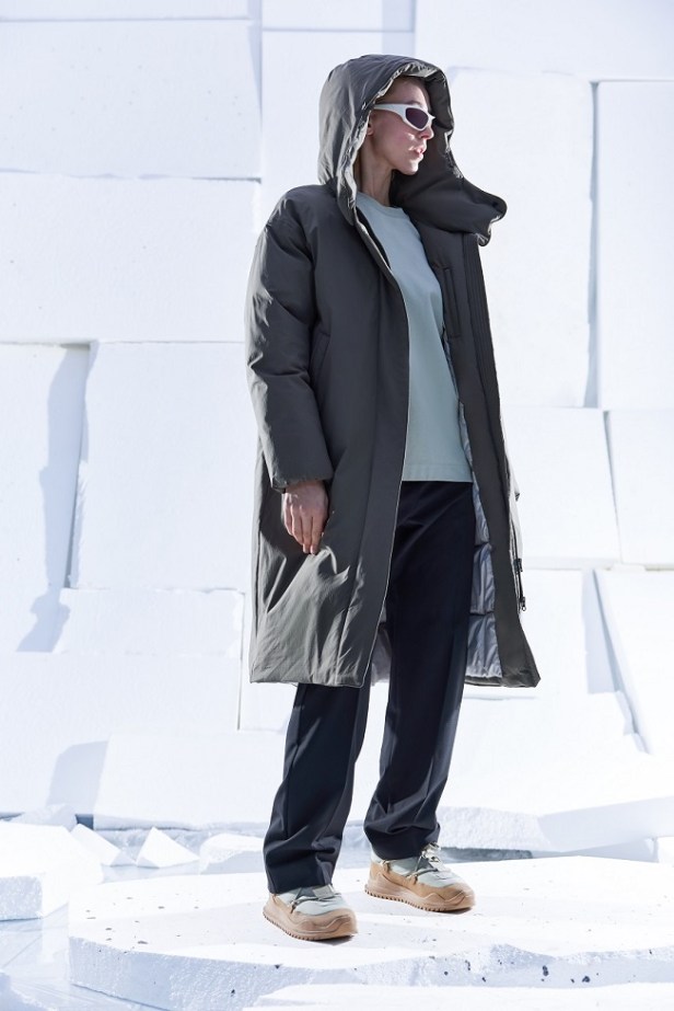 Il parka è inoltre confezionato con un tessuto Soft Grid 3K, riciclato, morbido e resistente, che ne esalta la funzionalità, con dettagli come la membrana antivento e impermeabile, le tasche a filetto e il cappuccio protettivo.