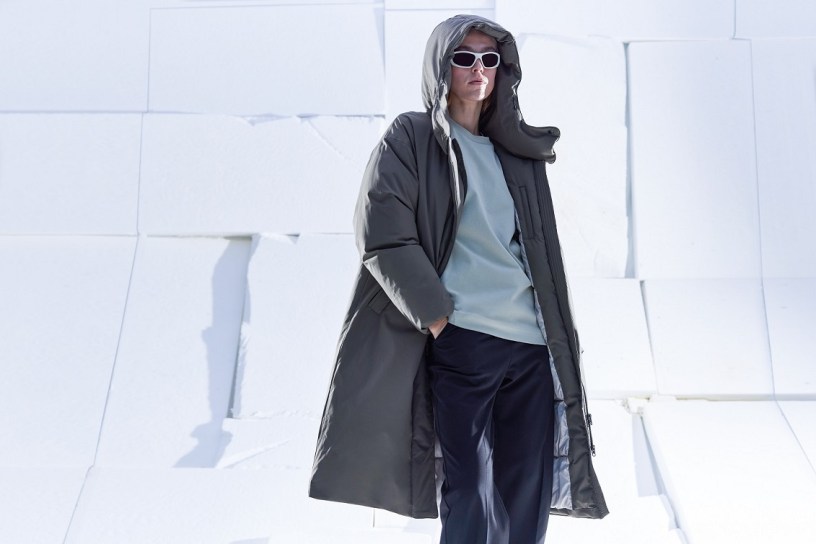 Il parka è inoltre confezionato con un tessuto Soft Grid 3K, riciclato, morbido e resistente, che ne esalta la funzionalità, con dettagli come la membrana antivento e impermeabile, le tasche a filetto e il cappuccio protettivo.