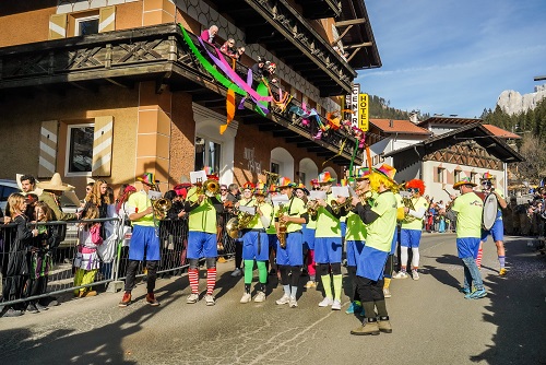 Perfino sulle candide montagne della Val d’Ega (BZ), che d’inverno si mascherano naturalmente sotto un sobrio e glaciale trucco bianco, il Carnevale porta una ventata di colore e allegria. Come ogni anno, anche nel 2025 il cuore del Patrimonio dell’Umanità UNESCO batte al ritmo di una variopinta tradizione che innesca idealmente una sfilata in grado di tingere con la sua contagiosa euforia le vette di Catinaccio e Latemar.