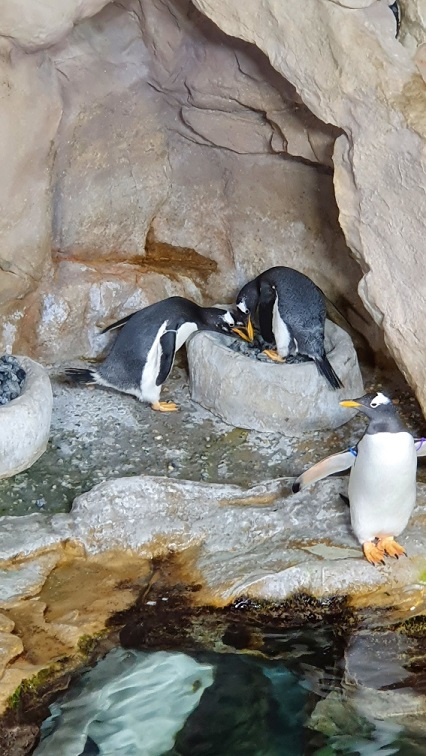 È questo il periodo dell’anno in cui si avvia la fase riproduttiva di questi simpatici uccelli e lo staff dell’Acquario posiziona sulle rocce della vasca le basi e i ciottoli di diversa misura utilizzati dai pinguini di questa specie per costruire il proprio nido.